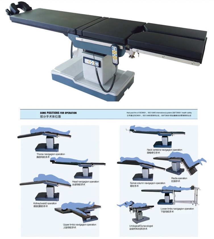 就是配合C型臂用的手術床,要求透視空間要足夠大,一般選擇全面版是碳素纖維手術臺。